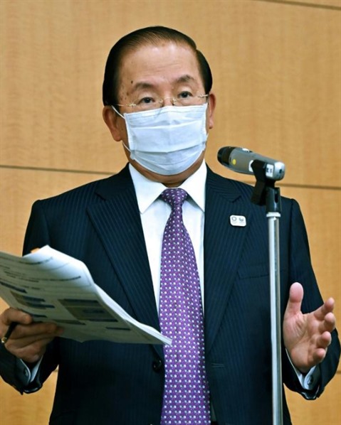 | Le directeur général du comité d'organisation de Tokyo-2020, Toshiro Muto, lors de la 6e réunion de coordination pour des mesures anti-COVID-19, à Tokyo, le 2 décembre. |