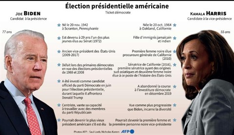 | Profils de Joe Biden et Kamala Harris, les candidats démocrates pour les postes de président et vice-présidente. |
