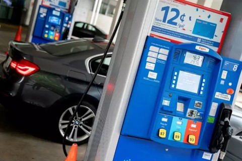 | Des automobilistes à une station-service, le 14 juin à Washington. |