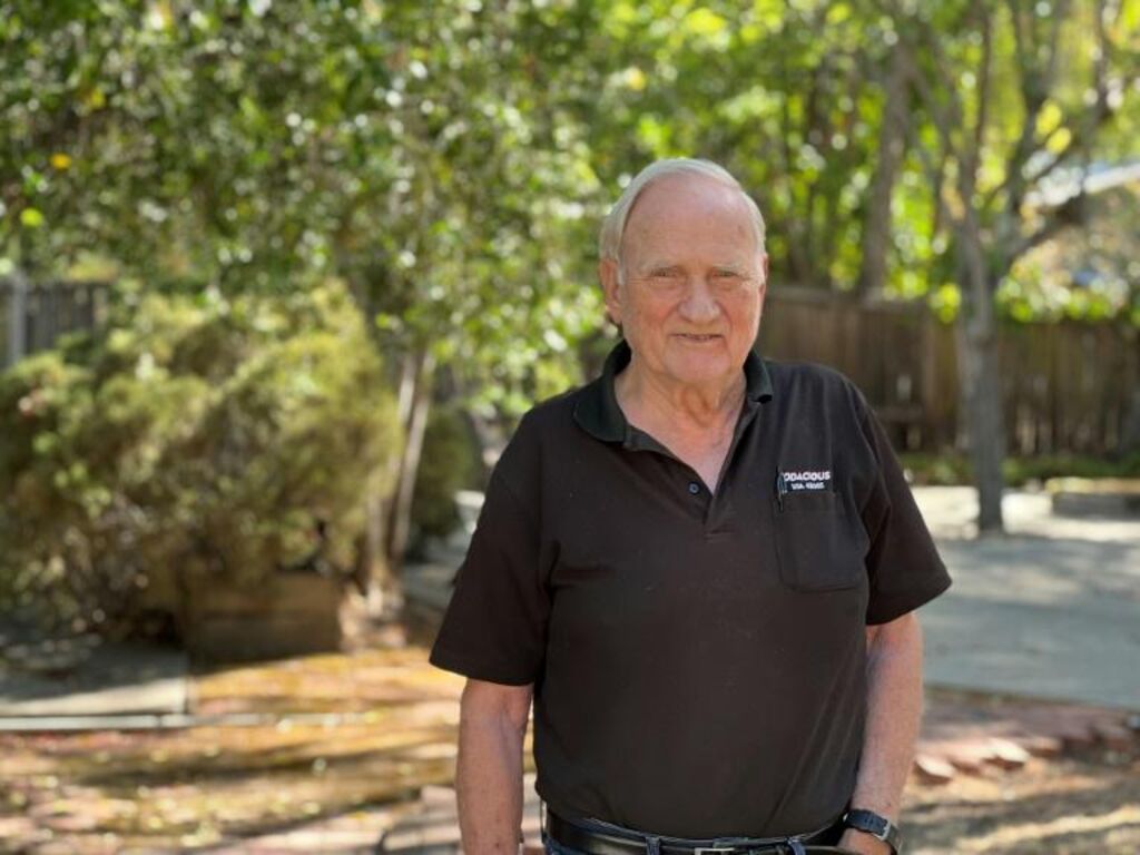 | L'Américain John Clauser, lauréat du prix Nobel de physique 2022, devant sa maison en Californie, le 4 octobre. |
