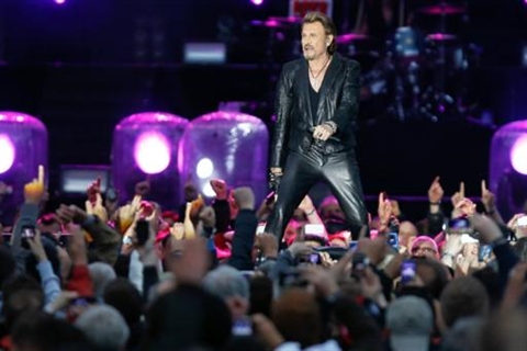 | Le chanteur Johnny Hallyday lors d'un concert à Namur en 2013 |