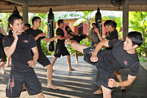 Situé sur l’avenue Lê Van Luong, dans le 7e arrondissement de Hô Chi Minh-Ville, le dojo Liên Phong (du nom de l’école que son grand père paternel a créée : Liên Phong Quyên) est bâti sur une superficie de 1.700 m². La sobriété est de mise, avec un style fortement inspiré de la vie rurale : remparts de bambou et objets en bambou, etc. Outre la zone d’entraînement centrale entourée de verdure, les locaux du dojo de l’acteur Johnny Tri Nguyên abritent aussi une cantine, un étang de poissons, et un coin dédié à la méditation. «Mon dojo ressemble à une villégiature, car mon désir est de donner aux pratiquants des espaces où ils peuvent se relaxer après les séances d’entraînement. Je veux qu’ils se sentent à l’aise comme s’ils étaient chez eux», confie Johnny.
