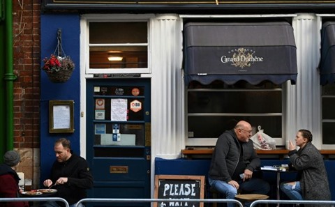 | Des clients attablés à l'extérieur d'un restaurant à Londres, le 15 décembre. |