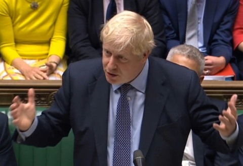 | Photo fournie par le Parlement britannique montrant le Premier ministre Boris Johnson s'exprimant devant la Chambre des communes, le 19 octobre. |
