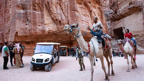 | Visite de Petra (Jordanie) en voitures électriques ou à dos de chameaux. |