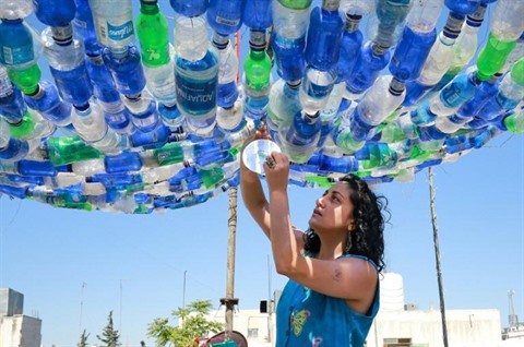 "L'art créé à partir de plastique est un moyen concret (...) de sensibiliser sur les problèmes environnementaux qui affectent les Jordaniens, leurs enfants (...) mais aussi la nature", dit-elle. "Une bouteille (en plastique) jetée dans une vallée va mettre 450 ans à se décomposer", affirme-t-elle en dénonçant les effets des "microplastiques qui polluent les sols, l'eau et la nature".