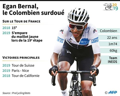 | Portrait d'Egan Bernal, nouveau maillot jaune du Tour de France. |