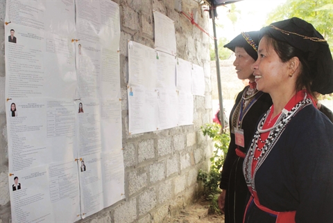 | Deux électrices issues d’une minorité ethnique, dans la commune de Kim Son, district de Dinh Hoa, province de Thai Nguyên, s’informent sur les candidats. Thu Hang/VNA/CVN |