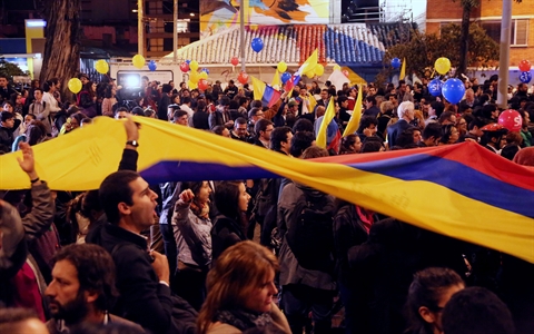 | La joie des Colobiens après la conclusion de l'accord de paix. |