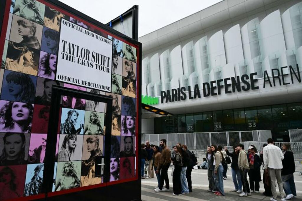 | Des fans de Taylor Swift font la queue pour acheter des produits dérivés avant le concert de la star au Paris La Défense Arena, le 8 mai à Nanterre, près de Paris. |