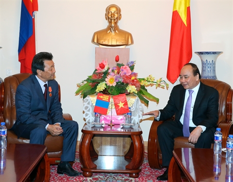| Nguyên Xuân Phuc (droite) et S. Dashtsevel, le 14 juillet à Oulan-Bator. |