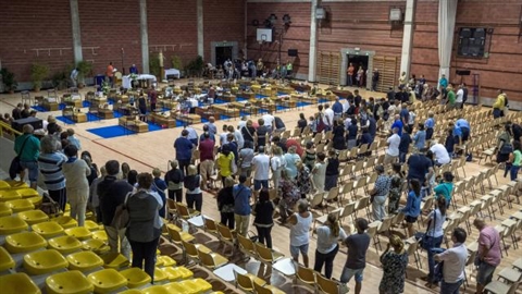 | À Ascoli Piceno, le gymnase est transformé en chapelle ardente, depuis vendredi 26 août. |