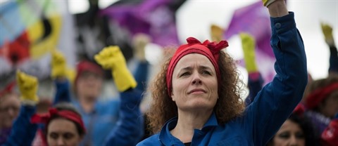 À 15h40 --heure théorique où les femmes cessent d'être rémunérées, compte tenu des écarts de salaires entre les sexes--, les manifestantes comptent procéder à un "jeter de gants de ménage", manière de protester à la fois contre les inégalités en matière de salaire et de répartition du travail domestique.