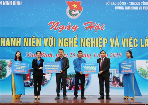 | Des jeunes bénéficient des capitaux pour réaliser leurs projets de start-up, le 23 mars à Ninh Binh. |