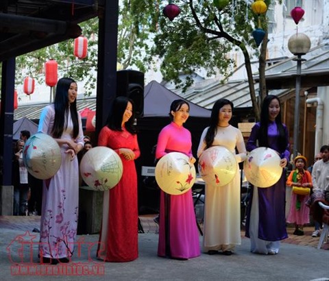 | Défilé d'áo dài dans le cadre de la "Journée du Vietnam" en Nouvelle-Zélande. |