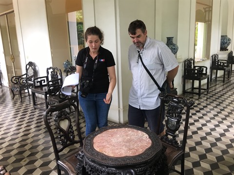 | Un visiteur se renseigne sur les meubles exposés à la résidence française. |