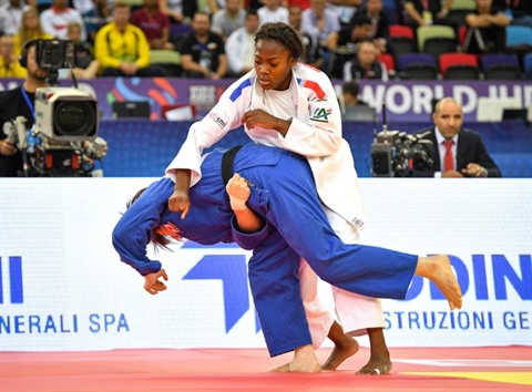 | La Française Clarisse Agbegnenou sacrée championne en -63 kilos aux Mondiaux de judo à Bakou le 23 septembre. |