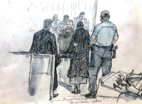| Croquis d'audience du procès en correctionnelle de 14 personnes, accusées d'avoir aidé des membres de la cellule jihadiste qui a fomenté les attentats du 13-Novembre 2015 en France, le 2 mai à Bruxelles. |