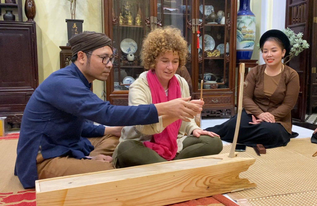 Enfin, la Française a eu l’occasion de découvrir le hát xâm (chant des aveugles), l’une des musiques traditionnelles vietnamiennes.