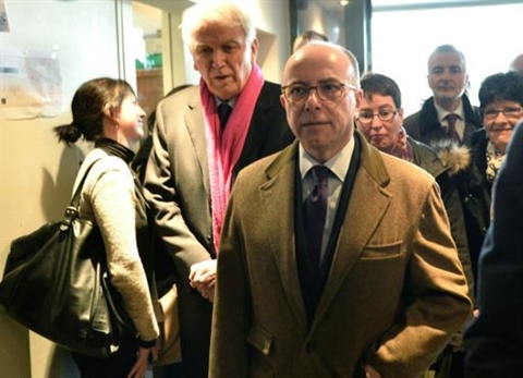 | Le ministre français de l'Intérieur, Bernard Cazeneuve, arrive dans un centre de réfugiés au Mans, le 22 février. |