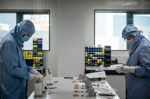| Des employés de Schneider Electric dans un laboratoire de la société, le 15 juin à Grenoble. |