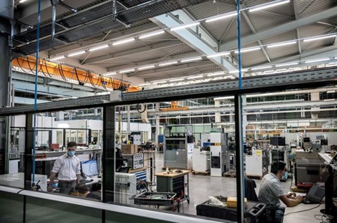 | Des employés du département recherches et développement du groupe Schneider Electric, le 15 juin à Grenoble. |