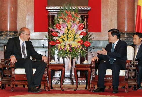 | Le président de la République, Truong Tân Sang (droite), et président de la Cour suprême hongroise, Darak Péter, le 12 novembre à Hanoi |