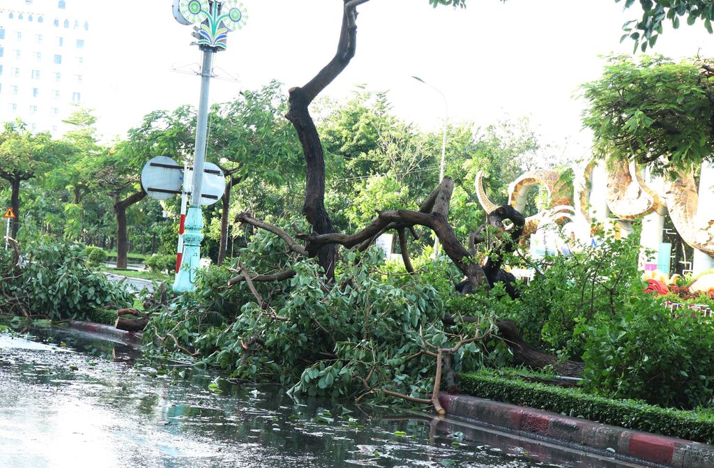 | Des arbres sont tombés après le passage du typhon Kalmaegi. |