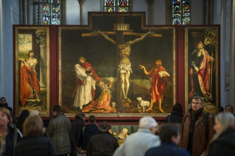 Exposée aux éléments, la peinture du parvis le sera aussi aux fientes d'oiseaux, observe modestement l'artiste, habituée à l'éphémère.