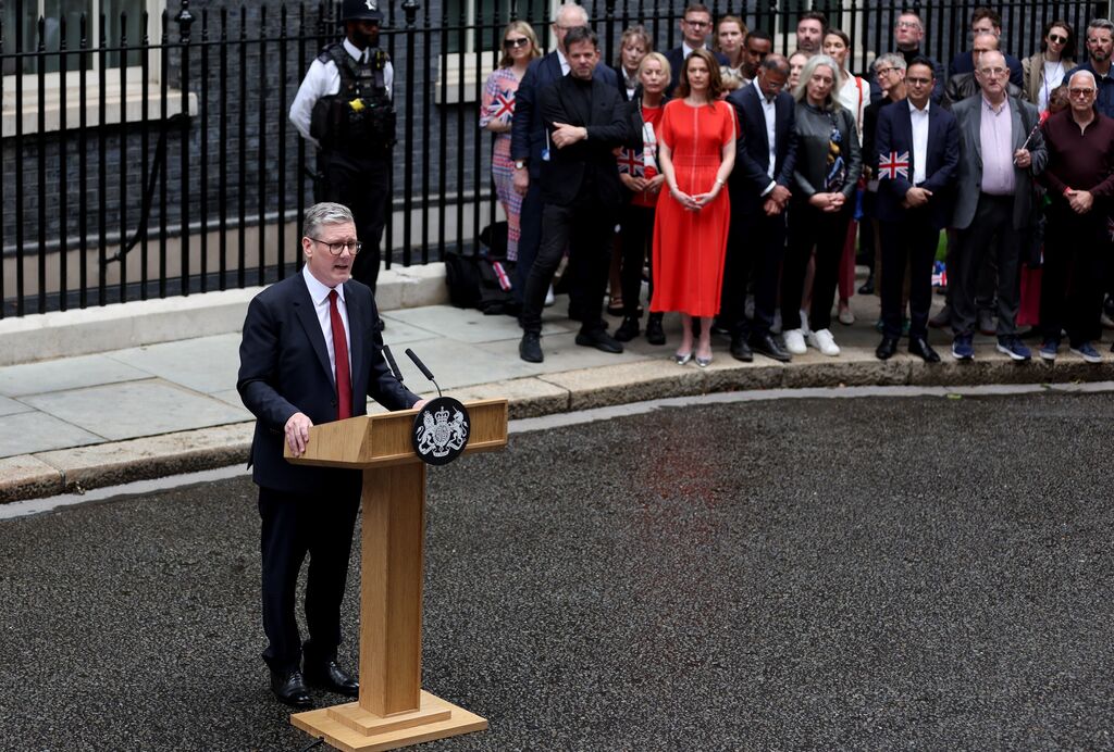 | Le nouveau Premier ministre britannique Keir Starmer prend son discours au numéro 10 Downing Street, le 5 juillet à Londres. |