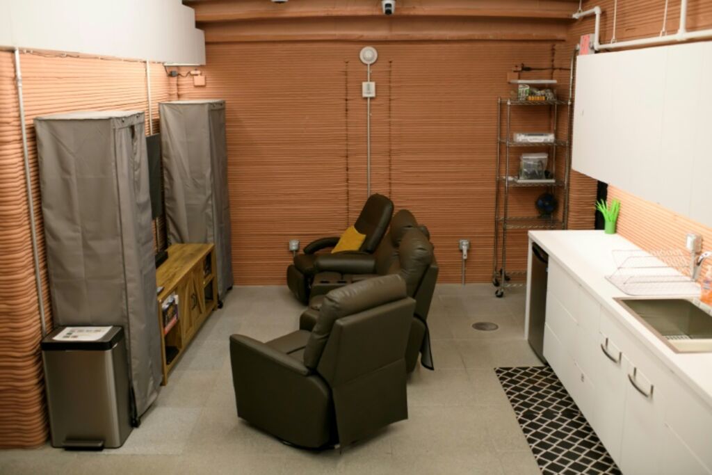 "Il y a même un espace extérieur", qui reconstitue l'environnement martien avec du sable rouge mais sans être à l'air libre pour maintenir l'illusion. L'équipage pourra y simuler des sorties spatiales, en combinaison - "probablement ce dont j'ai le plus hâte", confie la scientifique.