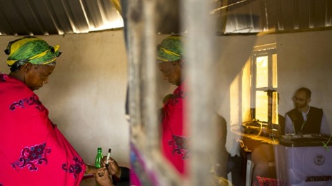 | Une femme vote dans un bureau de Kajiado, au Kenya, le 26 octobre 2017. |
