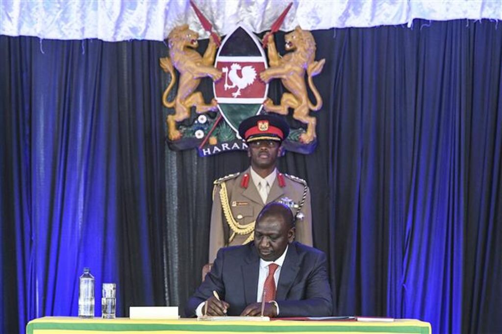 | Le président kenyan William Ruto (devant) lors de la cérémonie à Narobi, le 27 octobre. |