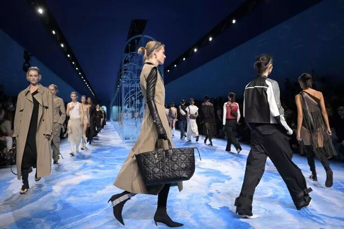 | Des mannequins défilent sur le podium après la présentation par Germanier de la collection Prêt-à-porter Femme Printemps-Été 2025 dans le cadre de la Fashion Week de Paris, à Paris le 24 septembre. |