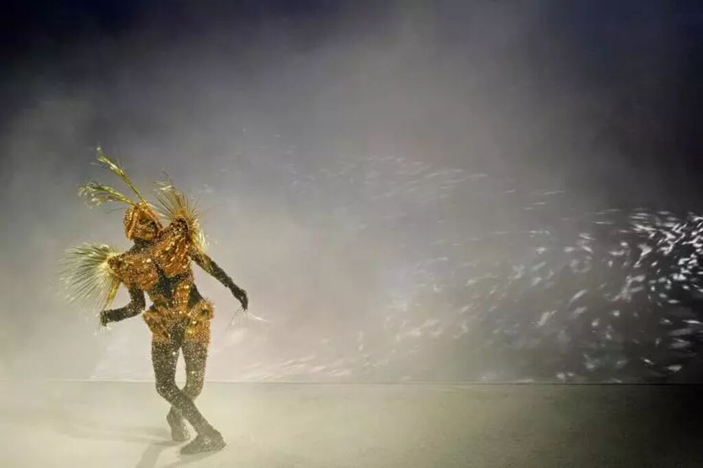 "C'est la plus grande plateforme qu'on m'ait donnée", ajoute-t-il en écarquillant encore les yeux deux mois après. Vogue a salué "le costume le plus impressionnant de la cérémonie". Les internautes se sont déchaînés sur cette silhouette de créature volante, mi-guêpe, mi-moustique, mi-feu d'artifice.