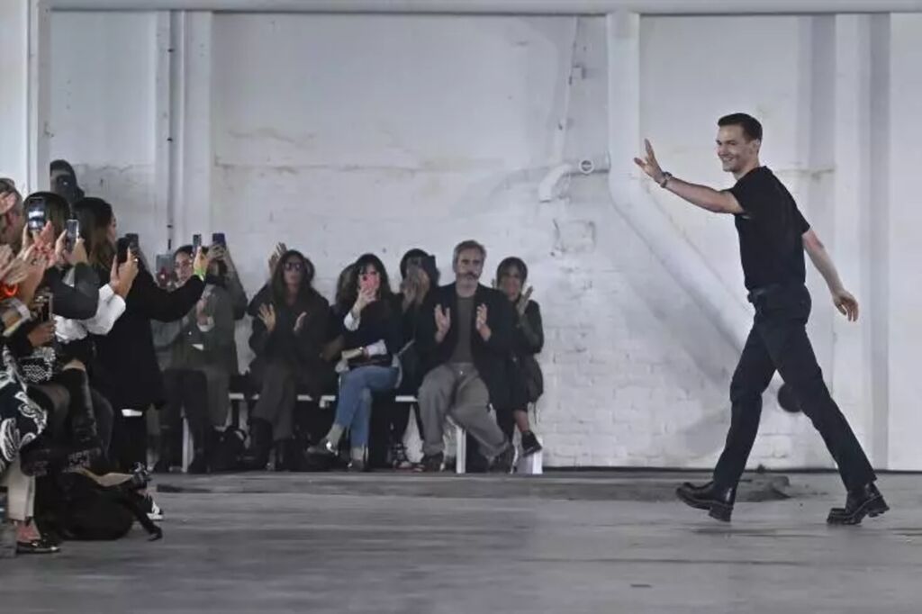 | Kevin Germanier salue le public suite à la présentation de ses créations par Germanier pour la collection Prêt-à-porter Femme Printemps-Été 2025 dans le cadre de la Fashion Week de Paris, à Paris le 24 septembre. |