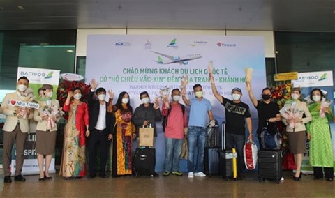 >>Le premier vol transportant des visiteurs étrangers munis de passeports vaccinaux à Khanh Hoa