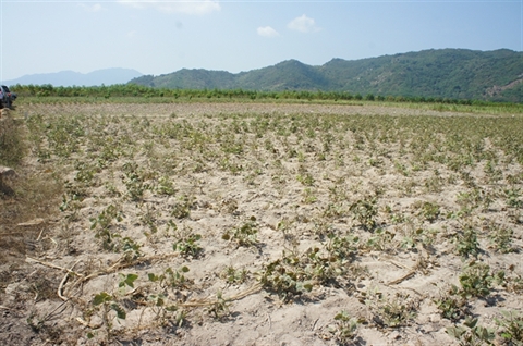 | La sécheresse ravage des cultures sur le chanmp de Cam Hiêp Bac, province de Khanh Hoa. |