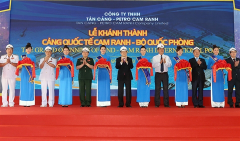 | Le président Truong Tân Sang (centre) à l'inauguration du port international de Cam Ranh |