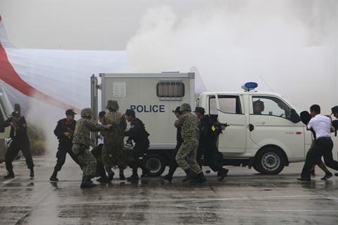 L’exercice s'est déroulé à l’aéroport international de Cam Ranh, dans la province de Khanh Hoà (Centre), pour tester la capacité d’intervention des forces de l’ordre face à un acte terroriste. Le scénario : prise d'otage par huit terroristes armés d'un vol dans l’espace aérien du Vietnam. Les négociations avec les terroristes ont échoué et les forces de sécurité ont dû pénétrer dans l'avion pour sauver les otages.