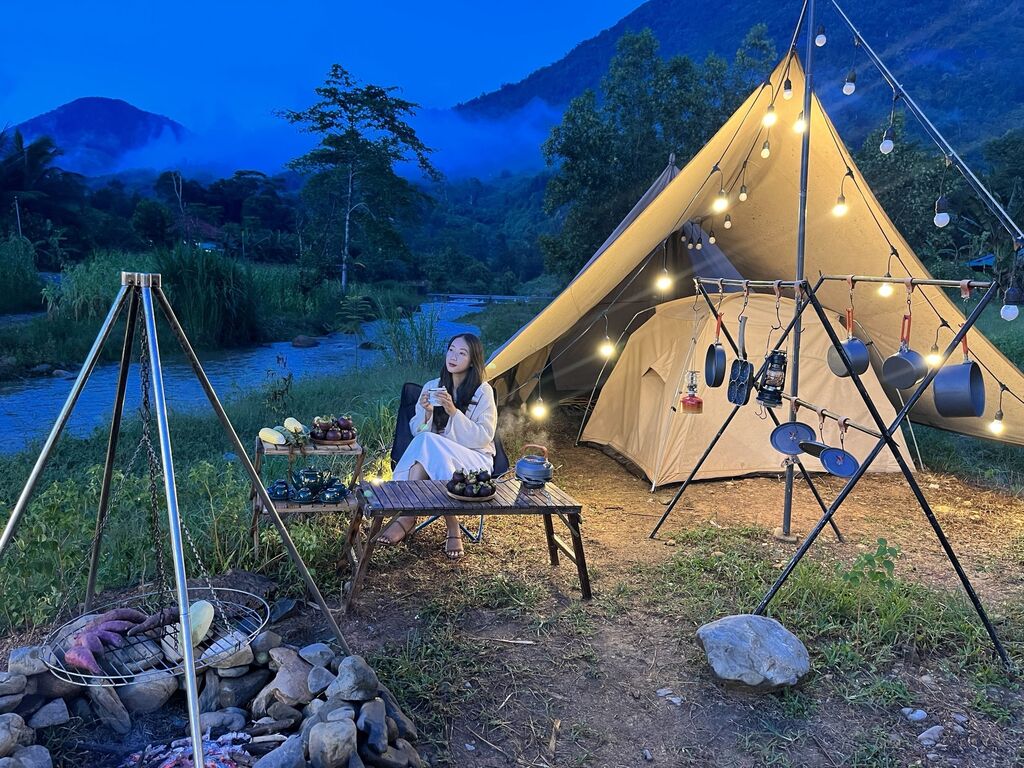 | Phuong Trinh, chef du groupe "Khanh Son Eco", dans une zone de camping. |