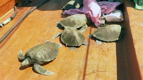 | Les tortues marines qui seront rendues dans l'océan à Kiên Giang (Sud). |