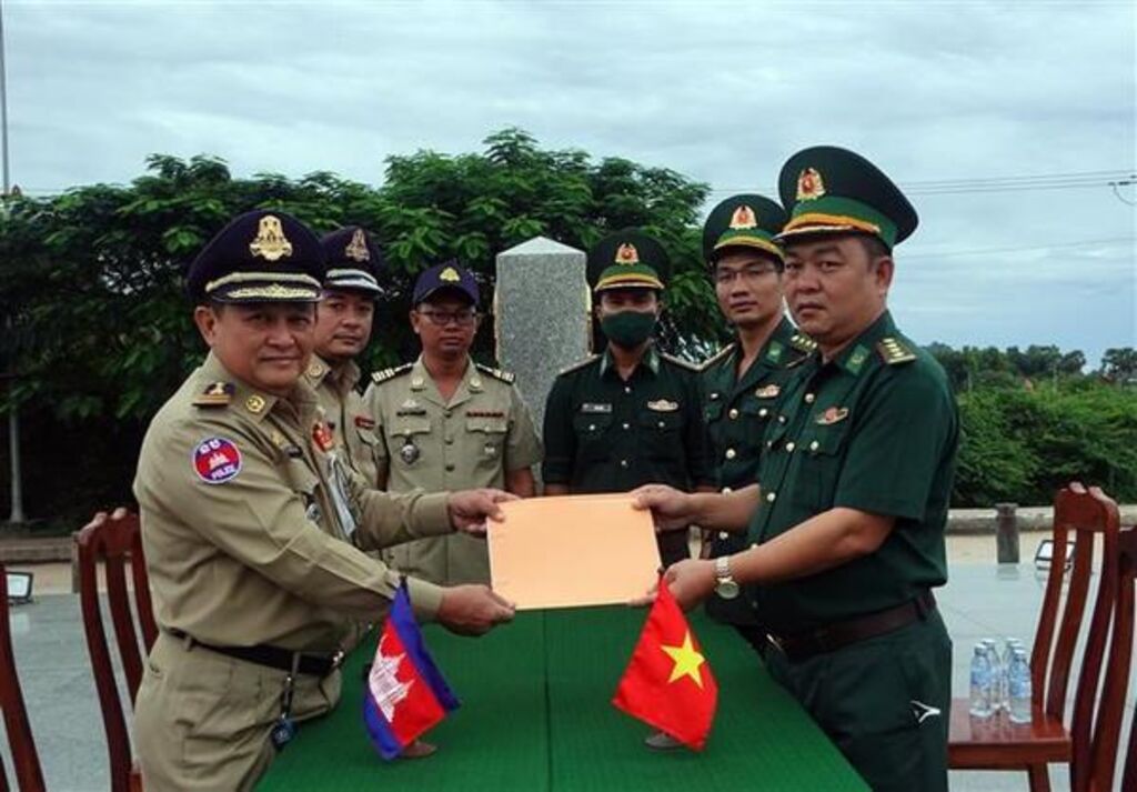 | Garde-frontières vietnamiens et cambodgiens lors des procédures de remise et de réception de citoyens. |