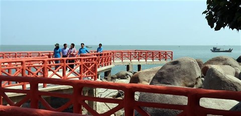 | Visiteurs dans le site de Bai Chén, sur l'île de Hon Tre, province de Kiên Giang. |