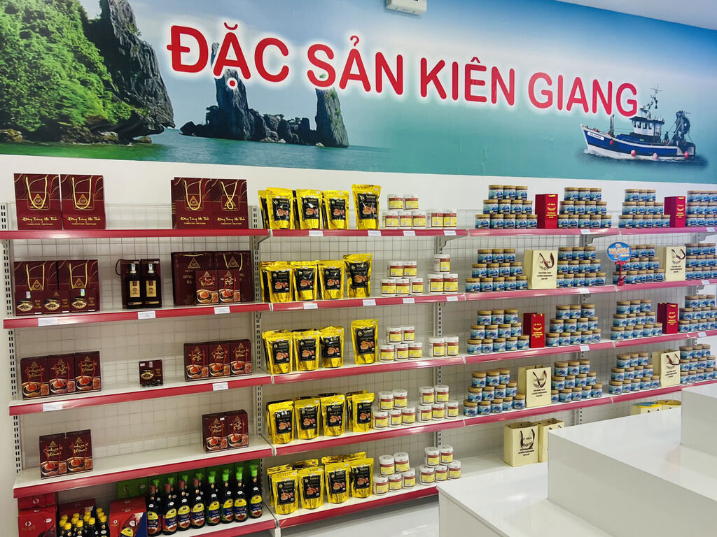 | Des produits typiques de la province de Kiên Giang sont exposé dans deux supermarchés, Co.opmart Kiên Giang et Co.opmart Rach Gia. |