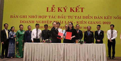 | Douze protocoles d’accord de coopération ont été signés lors du forum d’entreprises Thaïlande - Kiên Giang 2022. |