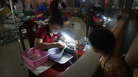 | Dans un centre de production de perles à l'île Phu Quôc, province de Kiên Giang (Sud). |