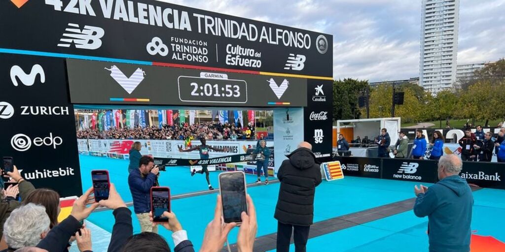 | Kelvin Kiptum du Kenya remporte la course masculine lors du marathon de Valence le 4 décembre. |