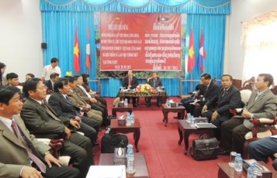 | Séance de travail entre la délégation de la province de Kon Tum et les dirigeants de la province lao d'Attapeu. |