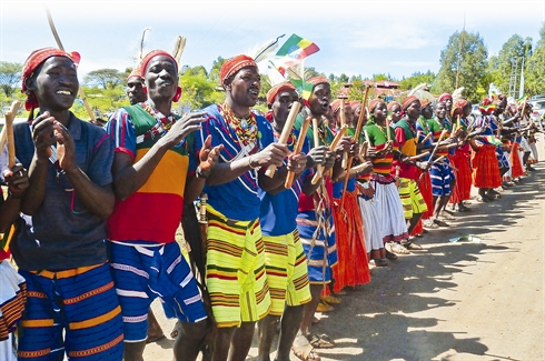 | Une danse traditionnelle de la tribu éthiopienne Konso pour fêter l’inscription de leur paysage culturel au patrimoine mondial de l’UNESCO. |